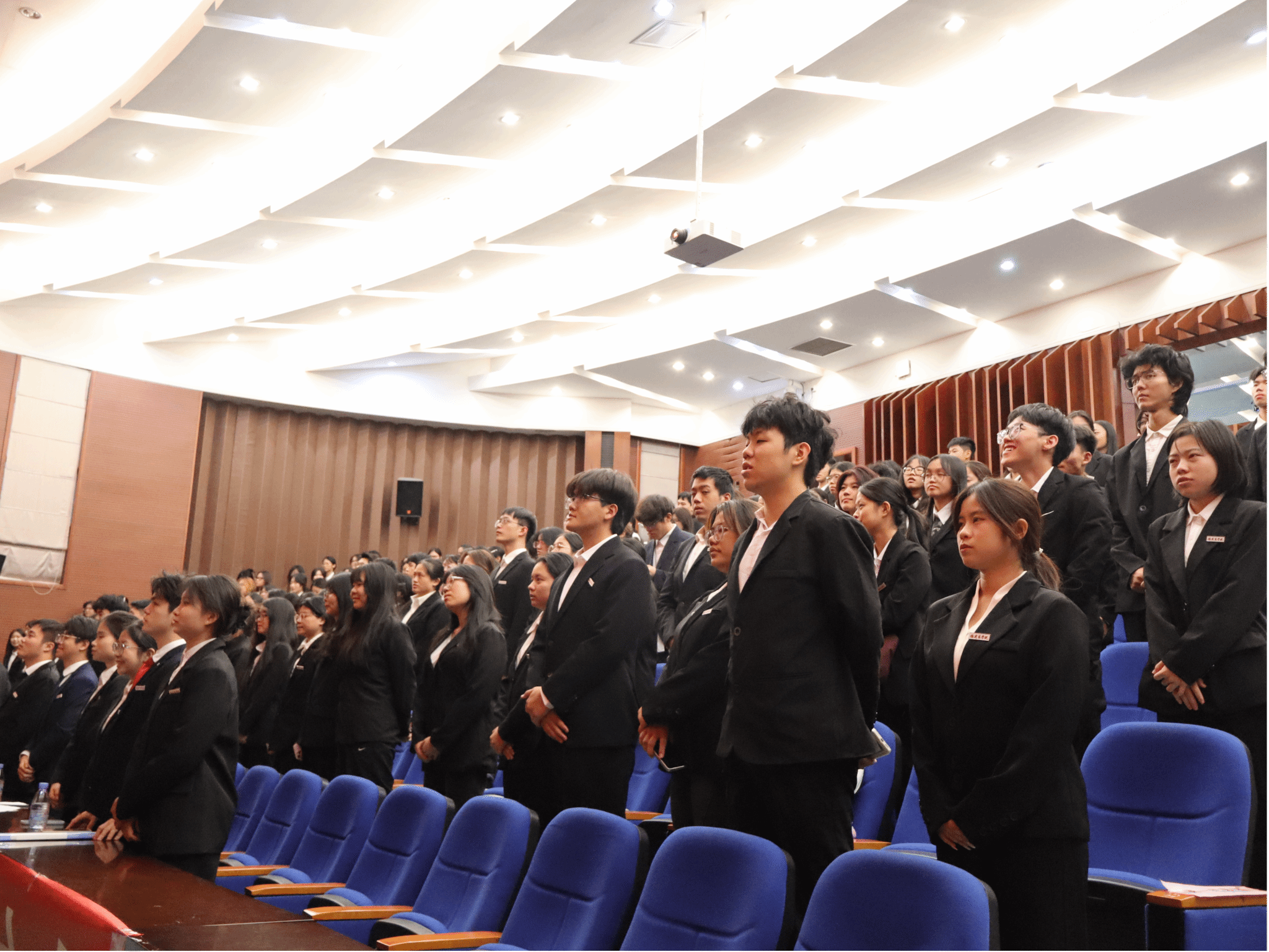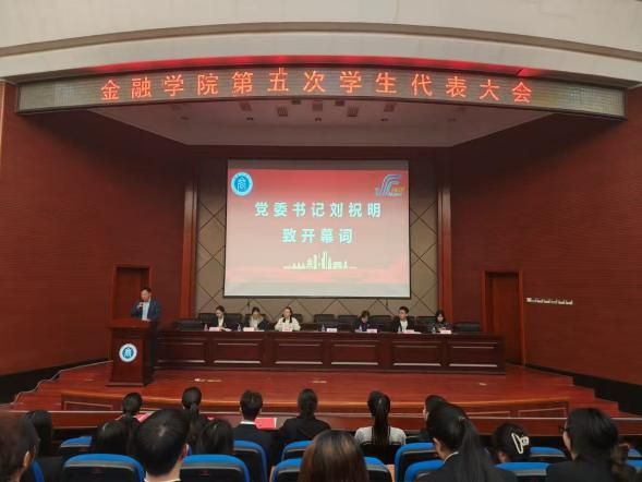 大会在庄严的国歌声中拉开帷幕。学院党委刘祝明书记致开幕辞,充分肯定了第八届学生会在思想引领、学风建设、服务同学等领域的实干成果,并对新一届学生会干部提出“明德修身、诚信立身、允能强技、笃行担当”四点希望,勉励同学们坚定理想信念、锤炼高尚品格、练就过硬本领、勇于实干担当,努力成长为堪当民族复兴大任的新时代金融人才。