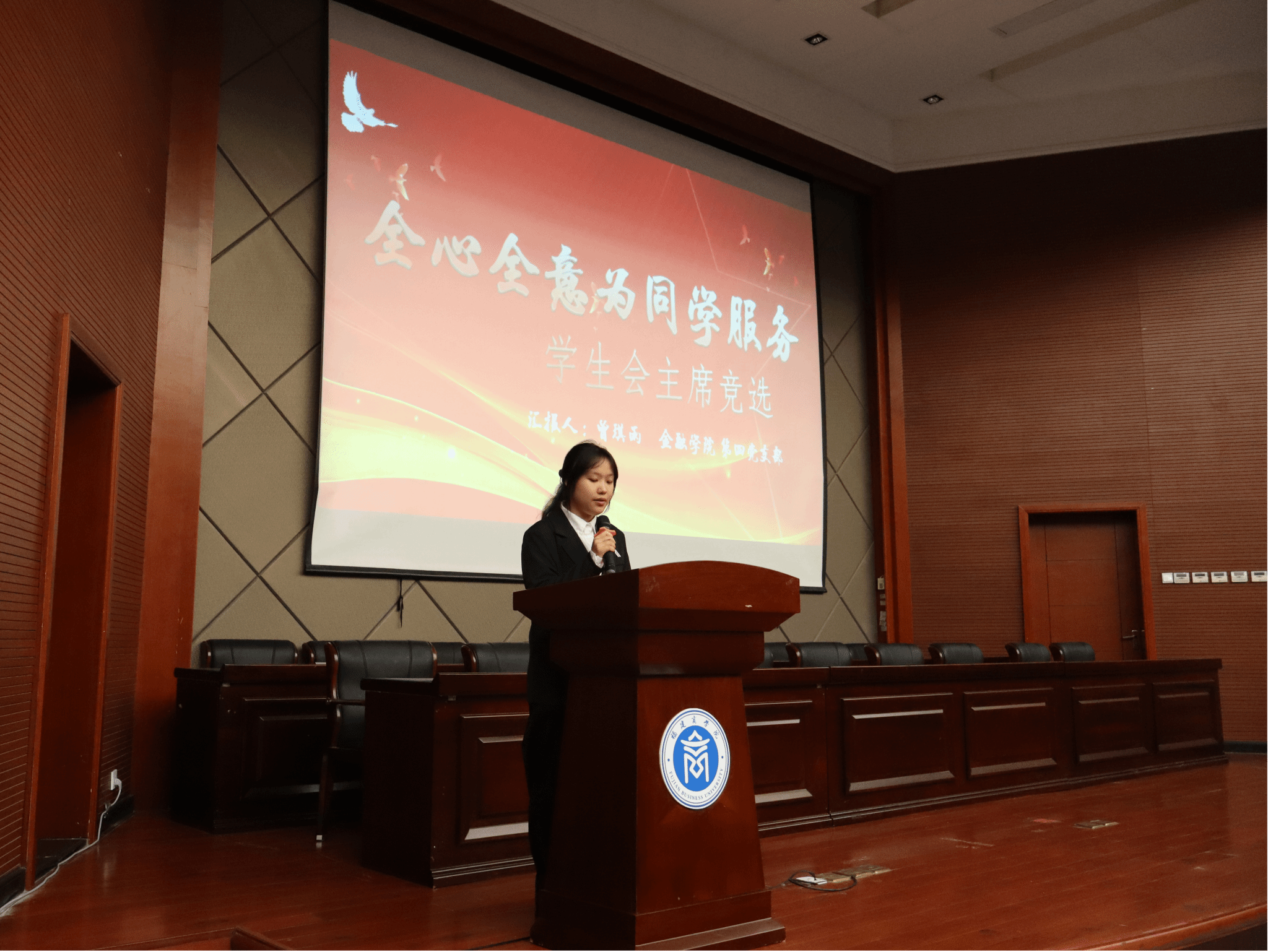 紧接着,第九届学生会主席团候选人依次上台进行演讲,紧密围绕工作规划、团队建设、服务理念等内容开展阐述,充分展示了各自的竞选优势,展现了金融学子积极进取、勇于担当的精神风貌。