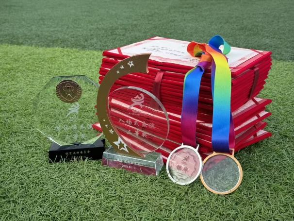 校运会上,团体操表演整齐动作的背后,是无数个傍晚的共同排练——记错动作时有同学小声提醒;体力不支时大家轮流陪练鼓劲;最终拿到三等奖时,我们紧紧抱在一起欢呼,比任何时候都更清楚“集体”的含义。拔河比赛中,有人掌心磨破了皮仍不肯松手,有人在旁边喊加油喊到嗓子沙哑,这场全力以赴的较量里,凝着每个人的执着。“福商杯”赛场上,篮球队落后时,替补队员在场边大声分析战术;足球队进球时,全队相拥庆祝,篮球亚军、足球冠军的荣誉,是赛场上的拼搏,更是场下的并肩。